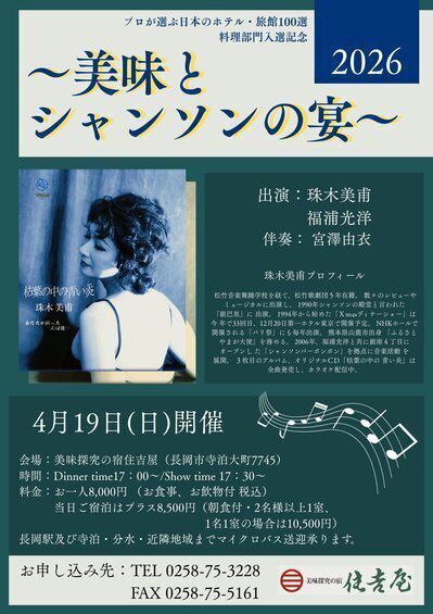 美味とシャンソンの宴2026を開催いたします!